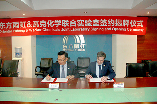 4月18日,北京東方雨虹防水技術(shù)股份有限公司和瓦克化學(xué)股份有限公司(以下簡稱瓦克化學(xué))在京宣布成立聯(lián)合實(shí)驗(yàn)室并舉行揭牌儀式。