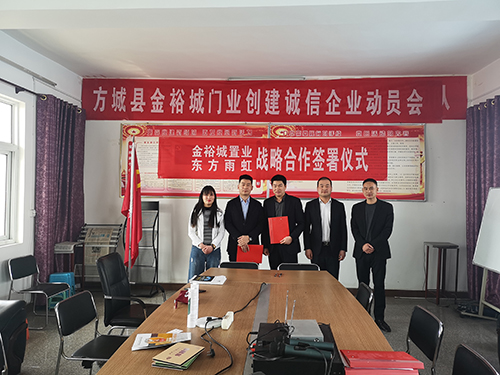 3月19日上午,東方雨虹與河南金裕城置業(yè)有限公司(以下簡(jiǎn)稱“金裕城置業(yè)”)舉行戰(zhàn)略合作簽約儀式。金裕城置業(yè)總經(jīng)理張春營(yíng)、辦公室主任陳川紅、工程師王超、東方雨虹工建集團(tuán)北方區(qū)豫西區(qū)域總經(jīng)理陳志超等出席簽約儀式。