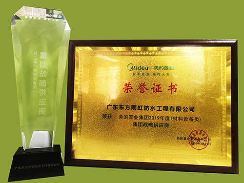 3月15日,美的置業(yè)“合心聚力 智創(chuàng)未來”2019年合作伙伴年會在佛山美的鷺湖國際會議中心召開。廣東東方雨虹以品質(zhì)與服務榮獲美的置業(yè)集團“2019年度(材料設備類)集團戰(zhàn)略供應商”稱號。