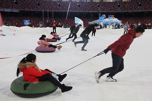 據(jù)悉,此次活動圍繞著“感恩、回饋、歡樂、激情”的總基調(diào),除了讓大家體驗現(xiàn)場的諸多冰雪項目外,還設(shè)計了雪圈賽跑、親子呼啦圈比賽、抽獎活動等精彩環(huán)節(jié)。