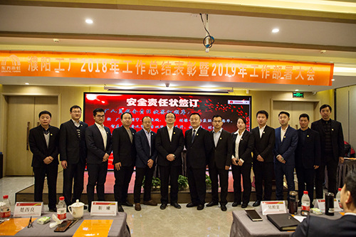 大會對優(yōu)秀員工進行表彰。濮陽生產(chǎn)基地各部門負責人、建設開發(fā)人員簽署2019年度安全責任狀。