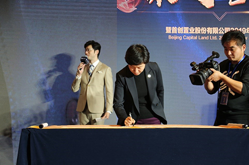 大會(huì)最后一個(gè)環(huán)節(jié)為匠心公約簽署。首創(chuàng)置業(yè)總裁鐘北辰、副總裁胡為民及與會(huì)的優(yōu)秀供應(yīng)商代表在匠心公約書上莊重簽名。
