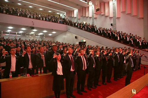 大會(huì)最后環(huán)節(jié),東方雨虹與會(huì)人員全體起立,向東方雨虹基本法宣誓。