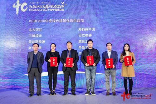 1月7日,由中國房地產(chǎn)報、中國房地產(chǎn)網(wǎng)、中國住交會組委會等聯(lián)合主辦的2018中國綠色建筑產(chǎn)業(yè)鏈主題峰會在京舉行。會上公布了中國綠色建筑領域的多項年度榮譽,東方雨虹、日立電梯、老板電器等企業(yè)榮獲“CIHAF2018年度十大綠色建筑優(yōu)選供應商”。