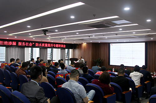 近日,福建省建設(shè)人力資源集團舉辦“拒絕滲漏 服務(wù)社會”建筑防水工程質(zhì)量提升專題培訓(xùn)會,東方雨虹應(yīng)邀出席。來自福建工程學(xué)院、省建設(shè)工程質(zhì)量安全監(jiān)督總站、省建設(shè)工程造價站、省交通工程造價站、福州地鐵、城鄉(xiāng)建總、福州建發(fā)、萬科地產(chǎn)、世茂地產(chǎn)、福建建工集團、中建海峽、省六建等三十余家企事業(yè)單位的近百位工程技術(shù)人員參加培訓(xùn)。