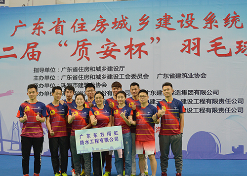 12月8至9日,廣東省住房城鄉(xiāng)建設(shè)系統(tǒng)第二屆“質(zhì)安杯”羽毛球賽在珠海橫琴國(guó)際網(wǎng)球中心舉辦。廣東省各地級(jí)以上市住房城鄉(xiāng)建設(shè)主管部門、在粵建筑施工企業(yè)、建設(shè)企業(yè)、地產(chǎn)開發(fā)商、設(shè)計(jì)單位等共25支羽毛球隊(duì)參與本次比賽,廣東東方雨虹作為優(yōu)秀施工企業(yè)單位受邀參加。