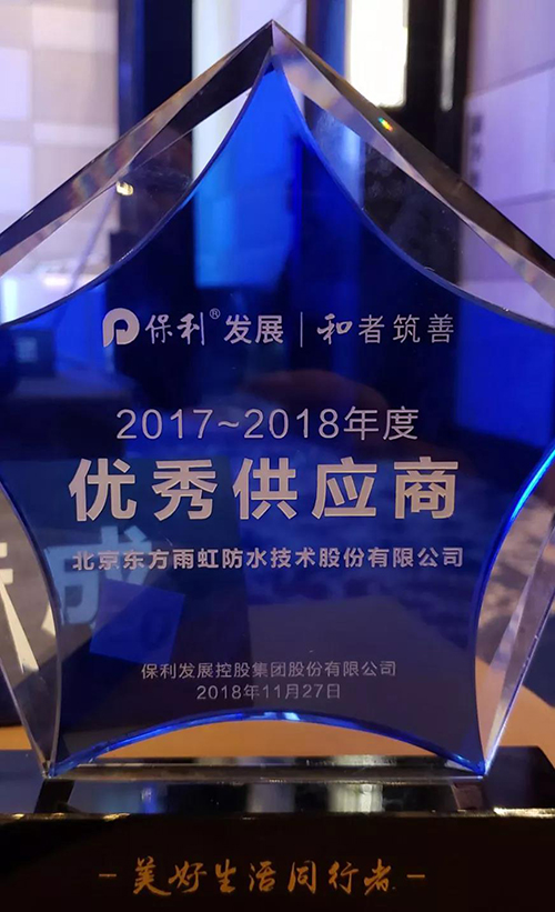 11月27日,由保利發(fā)展控股集團舉辦的“匠心發(fā)展·和你同行”2018年供應商大會于廣東佛山舉行。會上,東方雨虹憑借過硬的產品質量及細致周到的服務獲得保利發(fā)展控股“2017—2018年度優(yōu)秀供應商”稱號。