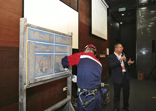 東方雨虹MS膠支持服務平臺總監(jiān)朱衛(wèi)如從裝配式建筑對防水密封膠的要求入手,對幾種密封膠的性能差異進行了分析,通過大量實驗數(shù)據(jù)證明MS密封膠滿足裝配式建筑防水密封需求的性能優(yōu)勢,并詳細介紹了東方雨虹以MS改性硅酮防水密封膠為核心的裝配式建筑防水密封系統(tǒng)。朱衛(wèi)如連同擁有豐富施工經(jīng)驗的施工工人劉紀松進行了現(xiàn)場標準化施工演示,為參會人員充分展示了MS改性硅酮防水密封膠在裝配式建筑防水密封系統(tǒng)的應用。