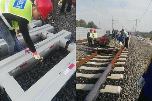 日前,在濟(jì)青高速鐵路、長琿城際鐵路的項目建設(shè)中,東方雨虹積極助力,聯(lián)合國家高分子重點(diǎn)實驗室、鐵道科學(xué)研究院等,將“高速鐵路固化道床防飛濺高分子材料涂層”新材料新技術(shù)成功應(yīng)用于項目施工。 有砟軌道床在時速350公里/小時條件下容易發(fā)生道砟飛濺現(xiàn)象,此次“高速鐵路固化道床防飛濺高分子材料涂層”的研發(fā)與應(yīng)用,通過將防飛濺涂層噴灑至道床表面區(qū)域,促使表面道砟顆粒發(fā)生固化,從而防止列車風(fēng)荷載作用下發(fā)生道砟飛濺的現(xiàn)象,對保障線路的行車安全具有重要意義。