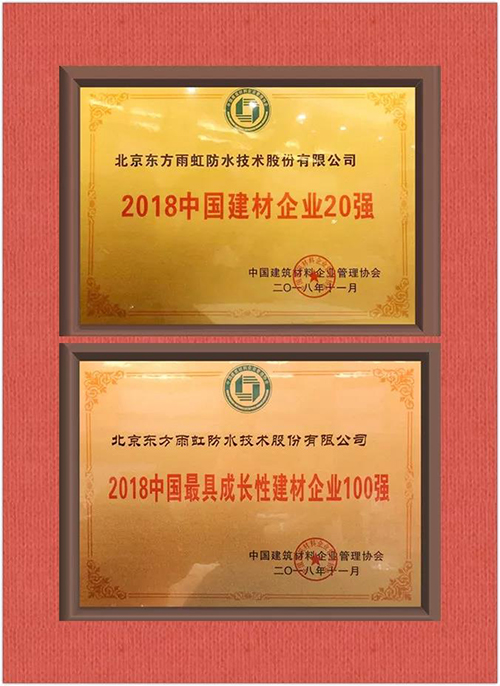 會上發(fā)布了2018中國建材企業(yè)500強(qiáng)等系列名單,東方雨虹榮獲“2018中國建材企業(yè)20強(qiáng)”“2018中國最具成長性建材企業(yè)100強(qiáng)”兩項(xiàng)殊榮。