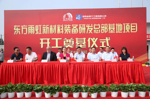湖南省第六工程有限公司華北公司總經(jīng)理袁鷹、原巴斯夫高級副總裁現(xiàn)東方雨虹特聘專家 Joachim Roser博士、東方雨虹新材料研發(fā)總部基地項(xiàng)目負(fù)責(zé)人楊小波、湖南省第六工程有限公司華北公司東方雨虹新材料研發(fā)總部基地項(xiàng)目負(fù)責(zé)人劉華平、中國建筑設(shè)計研究院有限公司設(shè)計主持人時紅等共同出席了此次開工奠基儀式。