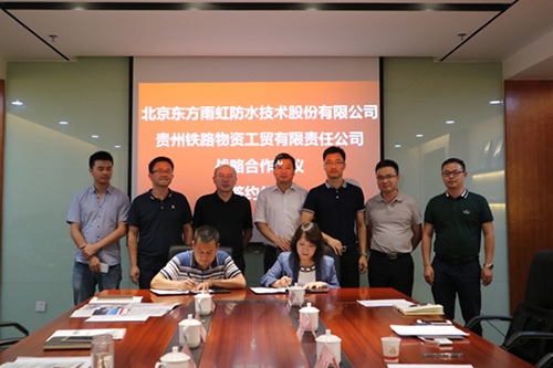 近日,東方雨虹與貴州鐵路物資工貿有限責任公司(以下簡稱“貴鐵物貿”)正式簽署戰(zhàn)略合作協(xié)議。貴鐵物貿公司董事長肖熙、東方雨虹高鐵事業(yè)部總經理彭小平等出席了簽約儀式。