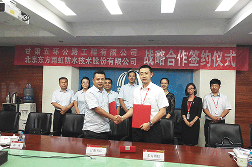 6月22-23日,甘肅五環(huán)公路工程有限公司黨支部書(shū)記、董事長(zhǎng)崔建文,總經(jīng)理高新民一行13人考察東方雨虹。東方雨虹集團(tuán)副總裁王文萍、市場(chǎng)營(yíng)銷(xiāo)總監(jiān)徐萌、總裁辦主任齊芬、體系總監(jiān)謝傳英、公路交通事業(yè)部經(jīng)理田野等接待了考察團(tuán)。