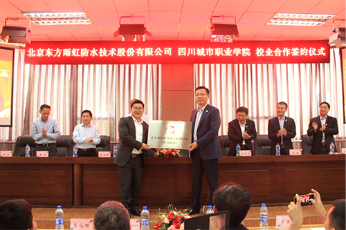4月3日,東方雨虹防水技工培訓學校(四川校區(qū))成立大會暨東方雨虹與四川城市職業(yè)學院合作簽約儀式在城市職業(yè)學院學術(shù)報告廳舉行。 東方雨虹集團總裁向錦明、集團工程總監(jiān)劉學峰、四川東方雨虹總經(jīng)理張帆、東方雨虹集團培訓學院副院長徐志明、四川城市職業(yè)學院院長王世倫、副院長趙齊陽、四川城市職業(yè)學院對外合作部部長敬陽、四川城市職業(yè)學院建筑工程學院院長劉洋等以及300余名學生代表見證了此次簽約儀式。