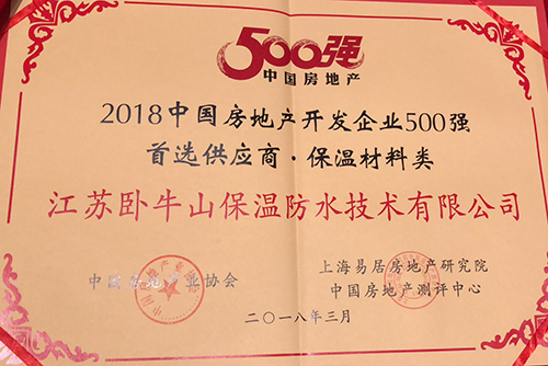 3月21日,“2018中國房地產500強測評成果發(fā)布會暨500強峰會”在京召開,會議發(fā)布了《2018中國房地產開發(fā)企業(yè)500強測評報告》及《2018中國房地產開發(fā)企業(yè)500強首選供應商服務商品牌測評報告》,臥牛山公司以16%的品牌首選率問鼎保溫材料類榜首。江蘇臥牛山公司總經理章程、副總經理兼總工程師熊少波出席此次會議。