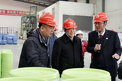 李澄陪同調(diào)研團參觀了岳陽生產(chǎn)基地的水性涂料車間和三期高分子車間,并詳細介紹了東方雨虹集團和岳陽生產(chǎn)基地的基本情況以及集團在岳陽投資的其他項目進展。在生產(chǎn)車間,陳飛詢問了生產(chǎn)基地各主要產(chǎn)品的生產(chǎn)工藝、產(chǎn)量、應(yīng)用領(lǐng)域及銷售模式等情況。在得知公司榮獲多項榮譽,產(chǎn)品廣泛應(yīng)用于地鐵、廠房、各種建筑領(lǐng)域并已遠銷多個國家和地區(qū)時,陳飛對公司的快速發(fā)展給予了充分的肯定。 參觀結(jié)束后,陳飛指出,東方雨虹能用二十多年的時間發(fā)展成為國內(nèi)防水行業(yè)的龍頭企業(yè)實屬不易,希望東方雨虹能保持良好的發(fā)展勢頭,繼續(xù)加大科技研發(fā)投入,加大人才引進力度,再接再厲,取得更加優(yōu)異的成績,為湖南省的經(jīng)濟發(fā)展做出更大的貢獻。
