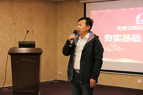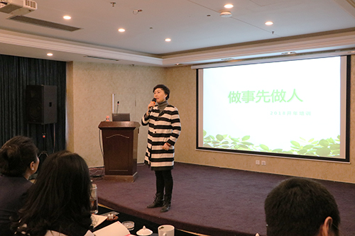 集訓(xùn)開始,天津東方雨虹董事長兼總經(jīng)理文敬芳女士作動員講話,通過《做事先做人》的主題分享,她期望參訓(xùn)人員開闊思路、突破自我、全心全意為客戶服務(wù);在2018年,大膽探索、勇于創(chuàng)新,迎接新的挑戰(zhàn)。