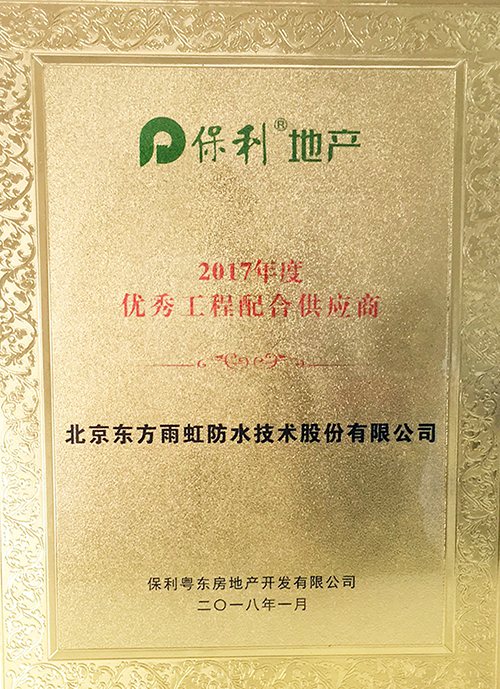 1月25日,保利粵東“和者匠心·筑善共贏”供應(yīng)商大會(huì)在東莞市東城區(qū)唐拉雅秀酒店舉行。大會(huì)公布了2017年度優(yōu)秀供應(yīng)商獲獎(jiǎng)名單,東方雨虹從眾多供應(yīng)商中脫穎而出,獲得“保利地產(chǎn)優(yōu)秀工程配合供應(yīng)商”榮譽(yù)稱號(hào)。廣東東方雨虹副董事長(zhǎng)尹建榮、總經(jīng)理助理王愛超受邀出席此次大會(huì),并代表公司領(lǐng)獎(jiǎng)。