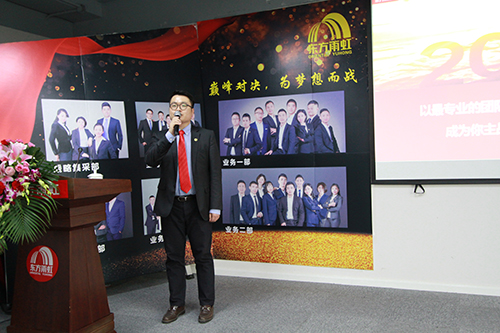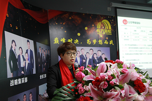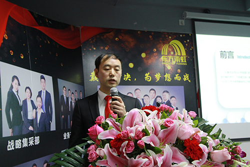 四川東方雨虹總經理助理何英女士首先以數據總結分析了2017年四川公司取得的進步、存在的不足和及今后的改進措施??偣こ處煿鶗詷废壬槍藴驶┕?、系統化服務做了工作匯報,他肯定了技術、成本、工程、安質版塊取得的成績,并對未來四川、重慶市場的標準化施工充滿期待??偨浝韽埛壬鳌疤釞n加速 贏在當下”的主題報告,他表示2018年要以合伙、合作協同為主要經營方式,并針對集采客戶拓展、合伙人開發(fā)方面提出了要求。