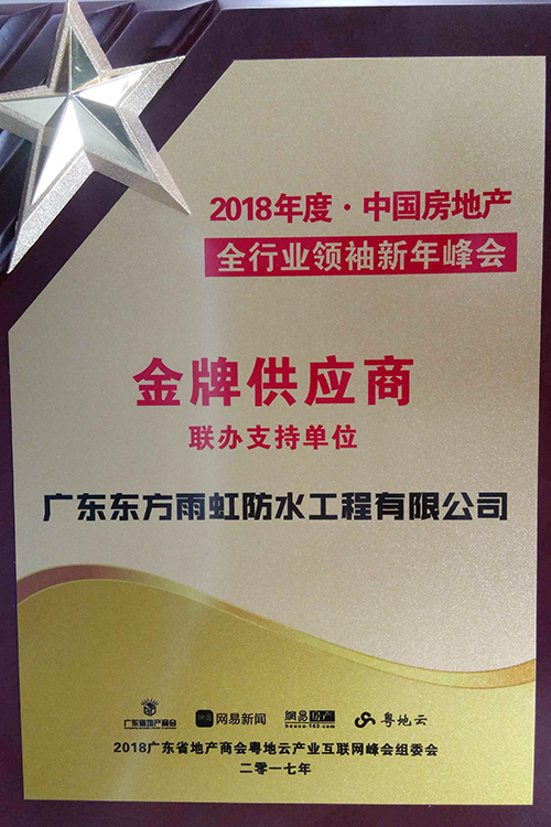 1月12日,由廣東省地產(chǎn)商會、網(wǎng)易房產(chǎn)聯(lián)合主辦的“2018中國房地產(chǎn)全行業(yè)領(lǐng)袖新年峰會暨中國地產(chǎn)冠軍榜及粵地云產(chǎn)業(yè)互聯(lián)網(wǎng)峰會”在廣州南豐朗豪酒店隆重舉行,約500多名政府部門人員、行業(yè)高層等出席本次會議,廣東東方雨虹總經(jīng)理孫福琴應(yīng)邀出席。廣東東方雨虹防水工程有限公司榮獲2018年度·中國房地產(chǎn)“金牌供應(yīng)商”榮譽稱號。