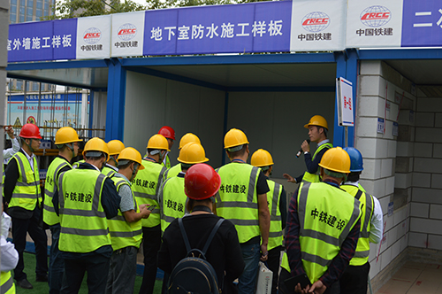 上午的活動(dòng)在南沙蕉門河水岸廣場(chǎng)項(xiàng)目工地舉行,南沙區(qū)住建系統(tǒng)、中鐵建設(shè)集團(tuán)合作伙伴及集團(tuán)內(nèi)部其他區(qū)域負(fù)責(zé)人、項(xiàng)目經(jīng)理等約300人分批次觀摩。東方雨虹結(jié)合項(xiàng)目現(xiàn)場(chǎng),展示了屋面和底板2個(gè)部位的防水做法,該項(xiàng)目負(fù)責(zé)人廣東東方雨虹業(yè)務(wù)一部經(jīng)理李勇對(duì)樣板進(jìn)行了全面的技術(shù)解說(shuō),為觀摩團(tuán)體留下了深刻印象。
