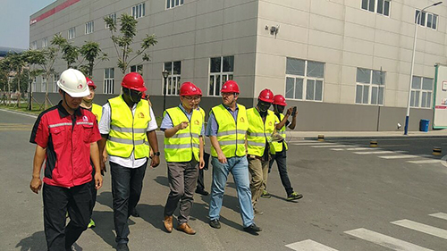 唐山東方雨虹副廠長趙來望向考察團介紹了唐山生產基地建設現狀,重點講解了涂料車間、卷材車間的生產設備、工藝、產品等情況,考察團詳細詢問了卷材的生產工藝流程及原材料供應情況,對車間自動化生產線、科學的生產工藝表示贊譽。 喀麥隆雅杜高速公路是一帶一路工程項目,是連接喀麥隆首都雅溫得與港口城市杜阿拉最便捷的快速通道,也是杜阿拉與乍得、中非等內陸國家貨物轉運通道的重要組成部分,同時還是喀麥隆國家干線公路網的不可替代的重要組成部分。雅杜項目人員對此次考察表示滿意,相信東方雨虹的品牌、產品質量,能為此項目帶來巨大的經濟效益和質量保障,希望能共同合作,長期共贏。