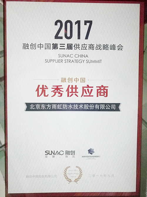 9月15日,融創(chuàng)中國 “五好合作、歸心前行”第三屆品牌供應(yīng)商戰(zhàn)略峰會在天津召開。融創(chuàng)集團(tuán)執(zhí)行董事兼行政總裁汪孟德、執(zhí)行總裁馬志霞、成本管理中心總經(jīng)理丁彤及各區(qū)域負(fù)責(zé)人,優(yōu)秀集采和區(qū)域供應(yīng)商等700余人參會。東方雨虹榮獲融創(chuàng)中國“優(yōu)秀供應(yīng)商”稱號。
