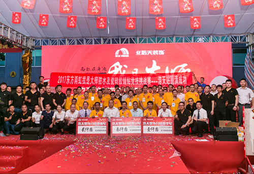 9月10日,由東方雨虹民用建材有限責(zé)任公司(以下簡稱雨虹)和浩天裝飾聯(lián)合舉辦的2017“我是大師”防水及瓷磚鋪貼精英競技挑戰(zhàn)賽落地深圳。 深圳市家裝家居行業(yè)協(xié)會會長李曉鋒、副秘書長張子軒,浩天裝飾集團(tuán)戰(zhàn)略管理部總監(jiān)竇滿豐、行政總裁劉經(jīng)仿、工程副總裁劉經(jīng)營等出席此次大賽。