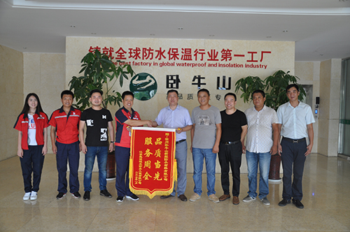 8月20日,江蘇鹽城恒成防水工程有限公司總經(jīng)理黃貴江手持“品質當先 服務周全”的錦旗,前往徐州臥牛山新型防水材料有限公司,表達對徐州臥牛山優(yōu)質產(chǎn)品、優(yōu)質服務的真摯謝意。