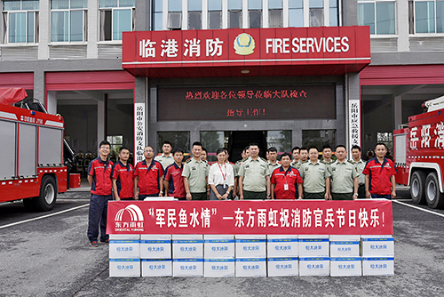 8月1日,在第90個(gè)建軍節(jié)來臨之時(shí),岳陽東方雨虹廠長助理陳桂福、王秀梅等一行人,前往岳陽市公安消防支隊(duì)臨港中隊(duì)慰問消防官兵,為他們送上了慰問品并致以節(jié)日的祝福。