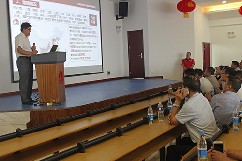 7月26日,湖北、河南、河北省防水協(xié)會(huì)專家及企業(yè)家共70余人來訪東方雨虹唐山生產(chǎn)基地參觀指導(dǎo)。 唐山生產(chǎn)基地廠長(zhǎng)馬到原向來訪團(tuán)介紹了東方雨虹的文化理念和發(fā)展前景,并展示了生產(chǎn)所用的原材料、生產(chǎn)設(shè)備,以及5S現(xiàn)場(chǎng)管理、產(chǎn)品檢測(cè)等生產(chǎn)環(huán)節(jié)。