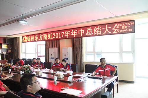 7月10日,錦州東方雨虹召開(kāi)2017年上半年工作總結(jié)會(huì)議。廠長(zhǎng)許朝暉主持會(huì)議并講話,各部門負(fù)責(zé)人參加了此次會(huì)議。 廠長(zhǎng)許朝暉首先對(duì)生產(chǎn)基地上半年的生產(chǎn)運(yùn)營(yíng)情況進(jìn)行了總結(jié)匯報(bào),并強(qiáng)調(diào)安全生產(chǎn)是重中之重,同時(shí)分析了上半年工作中存在的不足,指出下半年工作思路。
