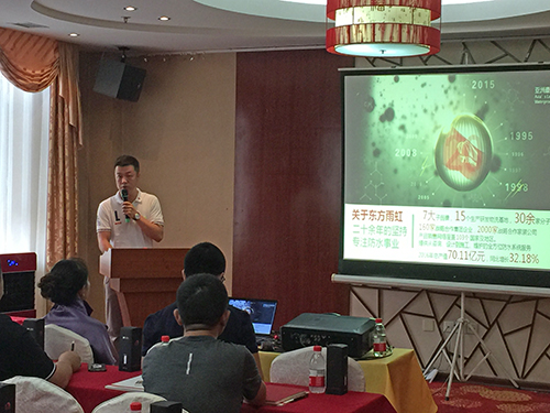 首先,吉林省總經(jīng)理王連成發(fā)表了“專注防水二十年”為主題的演講,為參會的客戶展現(xiàn)了全方面的東方雨虹;接著,東北區(qū)副總工王派以“技術(shù)創(chuàng)新,服務(wù)先行”為宗旨,展現(xiàn)了東方雨虹技術(shù)團隊的優(yōu)勢;最后,由東北事業(yè)部總經(jīng)理張宏濤詳細(xì)解讀了合伙人的政策方針,并對與會客戶提出的問題進(jìn)行了一一解答。