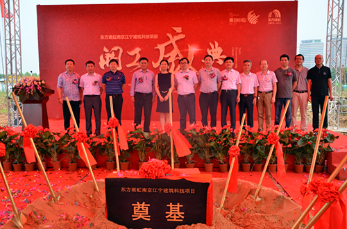 6月29日上午,在東方雨虹南京江寧建筑科技項目現(xiàn)場舉行了盛大的開工奠基儀式。南京紫金(江寧)科技創(chuàng)業(yè)特別社區(qū)管委會副主任常楠,東方雨虹董事、副總裁李興國,東方雨虹副總裁、江蘇臥牛山保溫防水技術(shù)有限公司董事長兼總經(jīng)理劉志榮,東方雨虹集團戰(zhàn)略投資部總經(jīng)理、虹山公司董事長陳福,江蘇省建筑工程集團有限公司執(zhí)行總裁蔣寧,江蘇省建筑工程集團有限公司市場拓展部總經(jīng)理許昌,喜邦設(shè)計院總經(jīng)理郭太寶,喜弘產(chǎn)業(yè)董事長鄭遠志,喜弘產(chǎn)業(yè)總經(jīng)理豐宇輝,南京虹山建設(shè)發(fā)展有限公司副總經(jīng)理馮德焰以等相關(guān)負責人出席了開工奠基儀式。