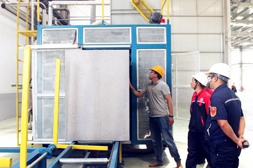 短短66天的時(shí)間,從設(shè)備進(jìn)場、安裝,到第一塊保溫板傳出生產(chǎn)線,唐山生產(chǎn)基地的員工日復(fù)一日的忙碌著,從4月16日,預(yù)發(fā)泡設(shè)備進(jìn)場安裝;到6月3日,成型設(shè)備進(jìn)場安裝;再到6月20日,提前10天完成試車,離不開全員的辛勤付出。