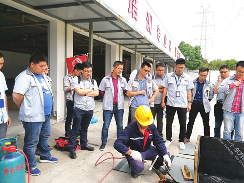 上海東方雨虹工程公司經(jīng)濟(jì)技術(shù)部技術(shù)經(jīng)理徐志明向工程師們簡要介紹了東方雨虹職業(yè)技術(shù)學(xué)院的使命和防水工程的意義及實操注意事項。東方雨虹工渠(中國)大客戶副總工程師喻學(xué)斌做了關(guān)于《防水工程施工技術(shù)》的專題演講,從工程系統(tǒng)的角度講解了防水材料、標(biāo)準(zhǔn)化施工工藝、管控措施、節(jié)點構(gòu)造等,還結(jié)合實際案例視頻剖析了防水工程技術(shù)和管理的要素。 而后,東方雨虹職業(yè)技術(shù)學(xué)院資深防水講師龍林軍和廖榮新分別為大家演示了SBS改性瀝青防水卷材的細(xì)部節(jié)點標(biāo)準(zhǔn)化施工做法和機(jī)械噴涂JSA-101聚合物水泥防水涂料的工藝方法。 最后,為了加強(qiáng)對防水卷材生產(chǎn)流水線的直觀了解,大家來到東方雨虹上海生產(chǎn)基地進(jìn)行了生產(chǎn)線的參觀學(xué)習(xí),了解鑒別材料優(yōu)劣的實用方法。