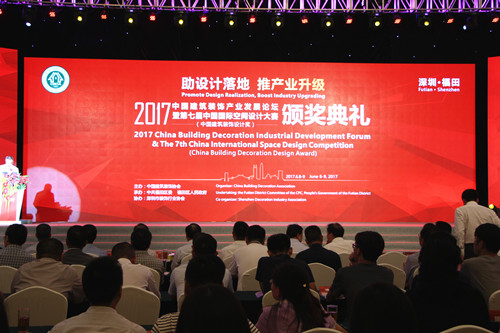 6月8日, 2017中國建筑裝飾產(chǎn)業(yè)發(fā)展論壇暨中國國際空間設(shè)計大賽典禮在深圳五洲賓館拉開帷幕,洛迪硅藻泥受邀參加,本次活動由中國建筑裝飾協(xié)會主辦,深圳市福田區(qū)人民政府承辦。
