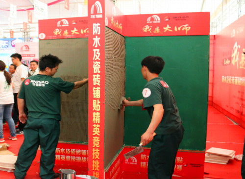 在防水及瓷磚鋪貼系統(tǒng)施工競技環(huán)節(jié),首先由東方雨虹的專業(yè)培訓師講解鋪貼工藝,重點介紹了瓷磚粘結(jié)劑的性能和使用注意事項;實操比武過程中,今朝裝飾的施工工人們圍繞雨虹薄貼法標準流程展開比拼,通過對打底、拉槽、材料配比等內(nèi)容的展示,引起了在場觀眾對標準化施工工法和雨虹瓷磚膠優(yōu)異性能的關(guān)注與認可。 東方雨虹作為今朝裝飾防水及瓷磚膠供應(yīng)商,不僅提供性能優(yōu)異的產(chǎn)品,還為今朝制定了引進自德國的瓷磚薄貼配套施工技術(shù),以3-5mm的鋪貼厚度,用揉、擠、壓實、定位的干作業(yè)粘貼工法按順序?qū)⒋纱u以拼圖方式黏貼在膠泥上。不僅節(jié)省材料,還有利于提高工作效率,并且減少對室內(nèi)空間的占用。