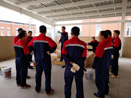 東方雨虹集團(tuán)工程總監(jiān)阮和章、技術(shù)學(xué)院副院長姜明、工渠(中國)技術(shù)總工程師林宏偉,固瑞克(GRACO)中國區(qū)總經(jīng)理莊敬出席會(huì)議,并作專題技術(shù)培訓(xùn)。來自全國各片區(qū)、省區(qū)的技術(shù)副總工程師還分享了各自區(qū)域的工程案例,討論并確認(rèn)了標(biāo)準(zhǔn)化施工項(xiàng)目組評(píng)定標(biāo)準(zhǔn)、標(biāo)準(zhǔn)化施工推廣會(huì)、技術(shù)服務(wù)OA流程等具體內(nèi)容。 在實(shí)操課程上,培訓(xùn)老師們組織學(xué)員實(shí)踐操作了SPU聚氨酯防水涂料、HCA丙烯酸防水涂料、PBC非固化橡膠瀝青防水涂料、JS聚合物水泥防水涂料、PMC防水灰漿、防水砂漿等材料的手工涂刷和機(jī)械噴涂;在姜明的指導(dǎo)下,學(xué)員們還進(jìn)行了固瑞克機(jī)械設(shè)備的裝拆、保養(yǎng)、維修等實(shí)踐,加深了機(jī)械設(shè)備的掌握運(yùn)用。