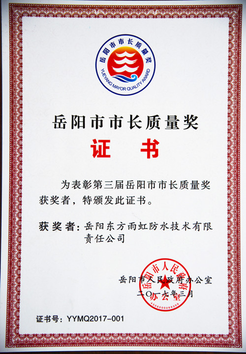 岳陽市為提升全市質(zhì)量水平,從2000年開始每年召開全市質(zhì)量工作會議,2010年開始實施質(zhì)量興市戰(zhàn)略,2012年開始設(shè)置市長質(zhì)量獎,2016年開始開展質(zhì)量工作考核,對質(zhì)量管理工作高度重視。會上,楊昆在發(fā)言中多次提到東方雨虹的質(zhì)量管理工作,對岳陽東方雨虹的發(fā)展給予高度評價,并號召在場其它企業(yè)家向東方雨虹學習,狠抓質(zhì)量,通過質(zhì)量創(chuàng)品牌。 本次獲獎,是岳陽市政府和社會各界對東方雨虹的質(zhì)量品質(zhì)及綜合競爭力的高度認可,既是榮譽,也是責任,東方雨虹將繼續(xù)在追求卓越的道路上努力前行,繼續(xù)強化質(zhì)量意識,加強質(zhì)量管理,落實質(zhì)量責任,提高產(chǎn)品、工程和服務(wù)的質(zhì)量,以質(zhì)量和品質(zhì)回報社會對東方雨虹的信任和認可。