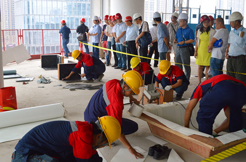 為推動(dòng)廣州市建筑施工質(zhì)量安全水平進(jìn)一步提高,鼓舞廣大建筑企業(yè)開展建設(shè)工程質(zhì)量安全生產(chǎn)工作的積極性,廣州市住房和城鄉(xiāng)建筑委員會(huì)對(duì)2016年度“安全月”“質(zhì)量月”現(xiàn)場(chǎng)觀摩會(huì)活動(dòng)中起到示范工地作用的企業(yè),予以誠(chéng)信加分并表彰。廣東東方雨虹脫穎而出,成為受表彰企業(yè)。 據(jù)悉,2016年9月,由廣州市住房和城鄉(xiāng)建設(shè)委員會(huì)、廣州市建設(shè)工程質(zhì)量監(jiān)督站主辦的質(zhì)量月現(xiàn)場(chǎng)觀摩會(huì)防水分場(chǎng)系廣東東方雨虹承辦,各區(qū)住建局、各級(jí)質(zhì)監(jiān)站、總包單位、施工單位、監(jiān)理單位等約400人參與現(xiàn)場(chǎng)觀摩活動(dòng)。此前,雙方已成功合作編制《廣州市建筑防水工程常見質(zhì)量問題防止指南》,并合作拍攝廣州市建筑工程防水施工工藝和滲漏問題防治視頻。