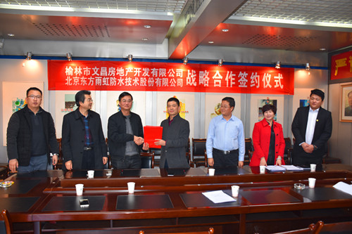 近日,東方雨虹與榆林市文昌集團(tuán)簽訂了集團(tuán)戰(zhàn)略合作協(xié)議。東方雨虹工程渠道西北事業(yè)部總經(jīng)理?xiàng)詈C?、陜西省總?jīng)理劉彬,文昌集團(tuán)副總經(jīng)理張東亮、副總經(jīng)理劉銳、總工程師劉志雄、采購部總經(jīng)理王二虎共同出席了本次簽約儀式。 榆林市文昌集團(tuán)成立于2000年,下設(shè)建筑公司、房地產(chǎn)開發(fā)公司、物業(yè)公司等10個子公司,是集建筑施工、安裝、房地產(chǎn)開發(fā)、裝修裝飾和商貿(mào)為一體的綜合性企業(yè)集團(tuán)。 東方雨虹憑借強(qiáng)大的生產(chǎn)能力、完善的防水產(chǎn)品體系和專業(yè)的服務(wù)團(tuán)隊(duì)贏得了文昌集團(tuán)的認(rèn)可和贊許,雙方將共同打造優(yōu)質(zhì)工程,為人類為社會創(chuàng)造持久安全的環(huán)境。