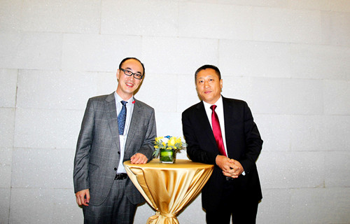 東方雨虹防水集團(tuán)總裁劉斌(右)與萬科集團(tuán)建筑研究與工程采購中心助理總經(jīng)理都軍(左)合影