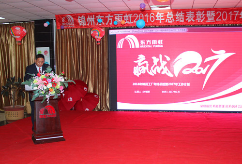 1月19日上午,東方雨虹錦州生產(chǎn)基地舉行2016年度總結(jié)表彰暨2017年度工作部署大會,當(dāng)?shù)卣I(lǐng)導(dǎo)、全體員工及部分家屬齊聚一堂,分享工作經(jīng)驗,表彰先進,齊頭并進,贏戰(zhàn)2017。