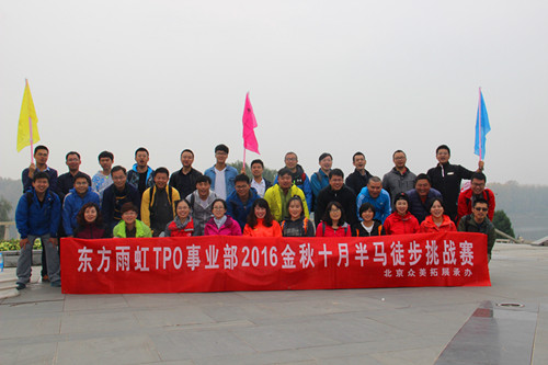 10月15日,金秋十月,碩果累累,東方雨虹TPO事業(yè)部舉辦了2016年十月半馬徒步挑戰(zhàn)賽,來自銷售、技術(shù)、職能的33名同事參加了此次活動。