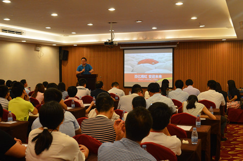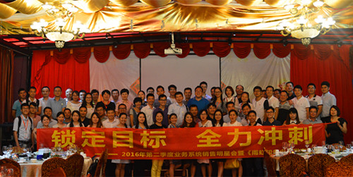 7月30日,以“鎖定目標(biāo),全力沖刺”為主題的廣東東方雨虹2016年第二季度業(yè)務(wù)系統(tǒng)銷售明星會暨《雨虹知多少》發(fā)布會在涵天酒店九樓舉行。廣東東方雨虹董事長楊浩成、常務(wù)副總經(jīng)理孫福琴、總經(jīng)理助理張舜苗、總經(jīng)理助理王超以及業(yè)務(wù)系統(tǒng)、職能系統(tǒng)共計70多名員工出席了此次會議。
