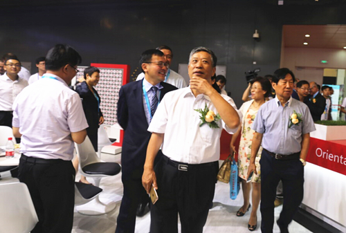 董事長李衛(wèi)國帶領(lǐng)中國工程院院士參觀東方雨虹展臺