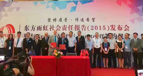 與此同時,14日上午東方雨虹發(fā)布了《2015年企業(yè)社會責(zé)任報告》,這是東方雨虹連續(xù)第8年發(fā)布社會責(zé)任報告了,再次為國家、為社會、為客戶、為員工、為股東呈上了一份滿意的答卷。中國建筑防水協(xié)會秘書長朱冬青先生、副會長苗燕女士應(yīng)邀出席了本次發(fā)布活動。