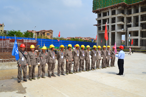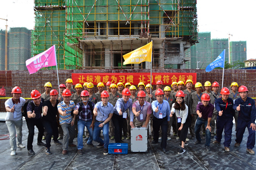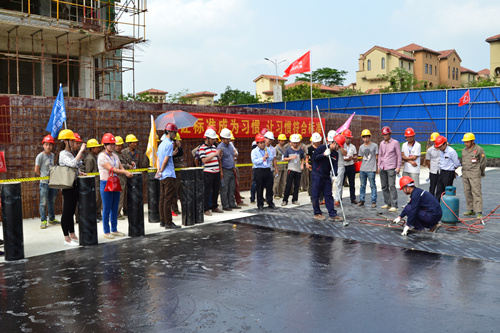為提高防水工程施工質(zhì)量和施工現(xiàn)場(chǎng)管理水平,解決因施工粗放而導(dǎo)致建筑滲漏率居高不下的問題,切實(shí)打造優(yōu)質(zhì)防水工程,東方雨虹決心在全國推行防水標(biāo)準(zhǔn)化施工服務(wù)體系。4月25日,東方雨虹工程渠道事業(yè)部與南寧東方雨虹防水工程有限公司共同組織舉辦了防水示范工地觀摩交流活動(dòng)----東方雨虹嘉和城白鷺郡南山項(xiàng)目防水標(biāo)準(zhǔn)化施工推介會(huì)。 嘉和城項(xiàng)目施工現(xiàn)場(chǎng)警戒線、標(biāo)示牌、司旗等一應(yīng)俱全,工人們統(tǒng)一著裝,以良好的風(fēng)貌列隊(duì)進(jìn)場(chǎng),嚴(yán)格執(zhí)行標(biāo)準(zhǔn)化施工的要求。