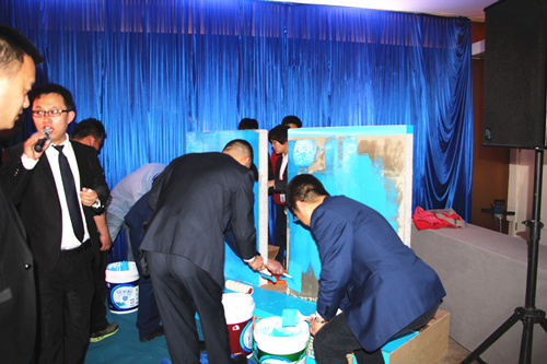 東方雨虹民建公司副總經(jīng)理鄭曉華先生發(fā)表“大變革時(shí)代下的建材零售”的主題演講,他指出2016年經(jīng)濟(jì)新常態(tài)是個(gè)高頻詞匯,面對(duì)新的市場(chǎng)形式,東方雨虹的代理商也要快速成長(zhǎng)以適應(yīng)市場(chǎng)變化。 隨后,會(huì)議邀請(qǐng)民建公司副總經(jīng)理熊衛(wèi)鋒講解“藍(lán)色金典”產(chǎn)品知識(shí),并現(xiàn)場(chǎng)安排產(chǎn)品實(shí)操。各代理商紛紛拿起工具親身體驗(yàn),對(duì)產(chǎn)品施工的體驗(yàn)和優(yōu)質(zhì)效果大加贊賞。